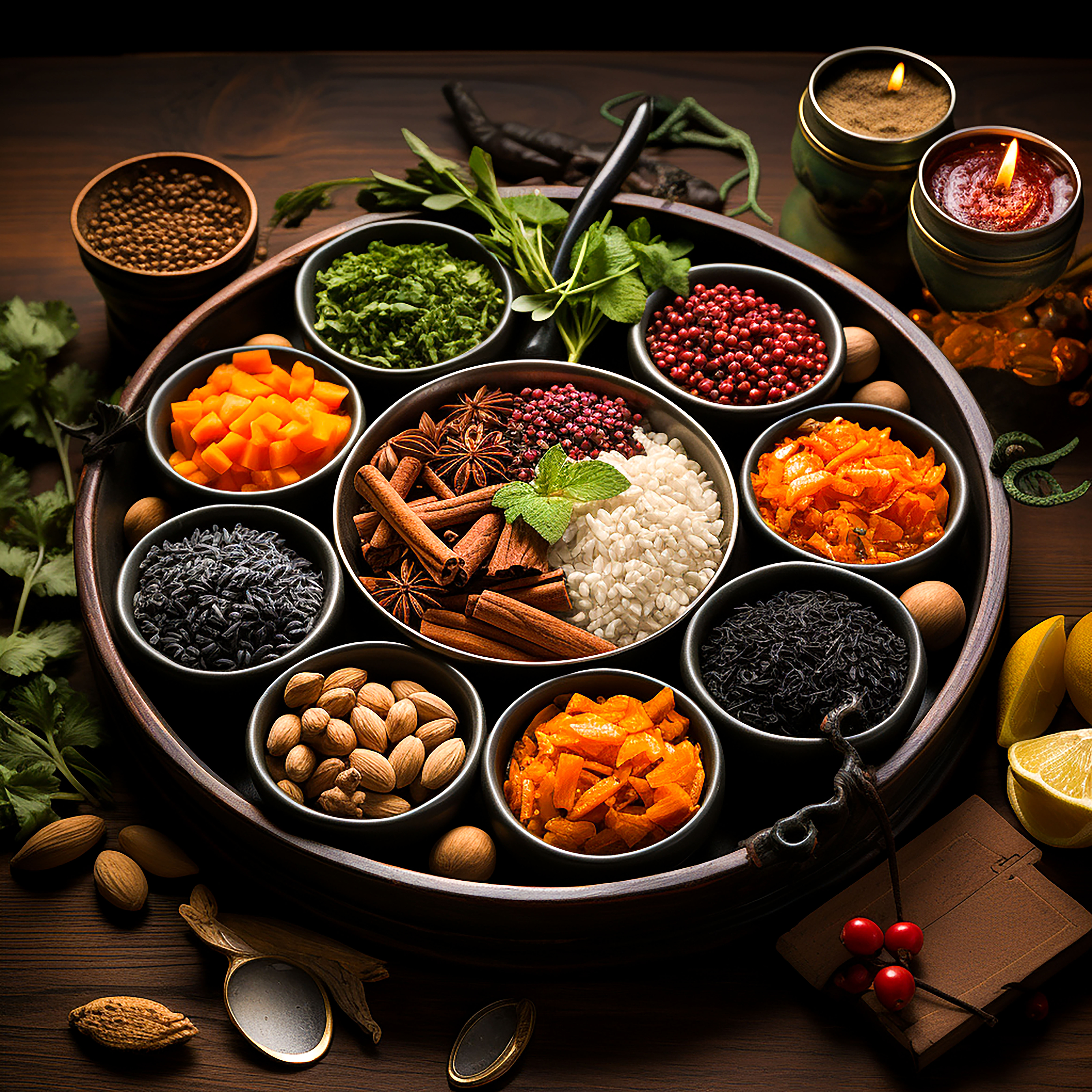Der Ayurveda geht davon aus, dass das Universum aus fünf Grundelementen besteht: Raum, Luft, Feuer, Wasser und Erde. Diese Elemente sind nicht nur die Grundbausteine unserer Umwelt, sondern spiegeln sich auch in der Konstitution unseres Körpers wider, die von den drei Lebensenergien oder Doshas bestimmt wird: Vata, Pitta und Kapha. Das Ziel der ayurvedischen Praxis ist es, ein Gleichgewicht dieser Doshas im Individuum zu erreichen und aufrechtzuerhalten und dadurch Gesundheit und Wohlbefinden durch ein Spektrum verschiedener Ernährungsempfehlungen zu erhalten.